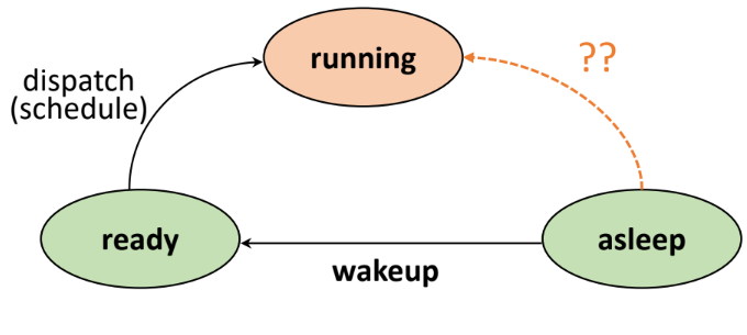 이 과정에서, 다른 자원이 할당 되었다고 해도 바로 Running State로 가지 못하고 Ready State를 거쳤다가 자기 순서가 되면 Running State로 넘어가게 된다.