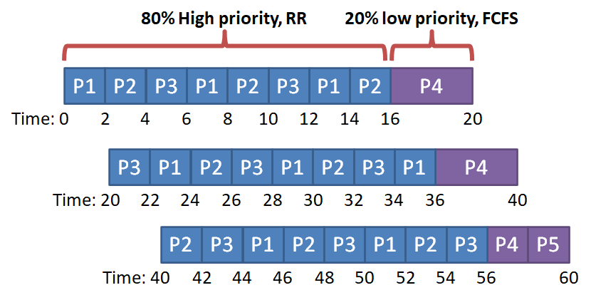 2. 각 대기열에는 고정 된 양의 CPU 시간이 제공됨